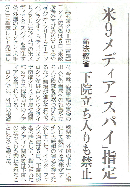 ロシア内の特定のメディアに外国エージェントとして登録を要求するものです。