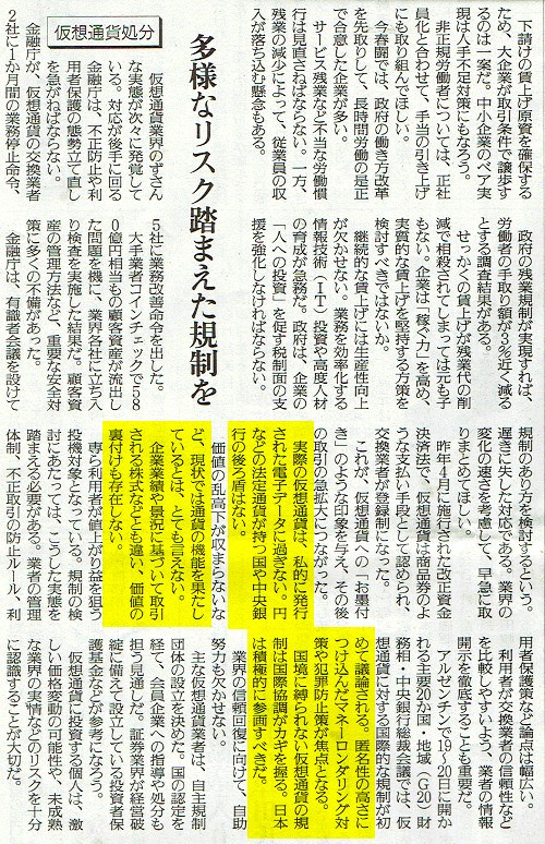 ビットコインは崩壊するにて、マイク・アダムスの受け売りを書きましたが、いよいよ彼の言う通りになりそうです。各国が規制を言い出しており、Googleも仮想通貨の広告を禁止するそうで、グローバリストの奴隷日報、もとい読売新聞もこんな記事をだしました。