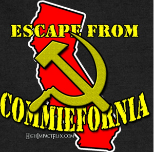 「コミフォルニアからの脱出」なんですが、絵柄を見てもらえばわかるように、意味としては「共産主義カリフォルニアからの脱出」です。彼のショップはここですね。https://shop.spreadshirt.com/HighImpactFlix/