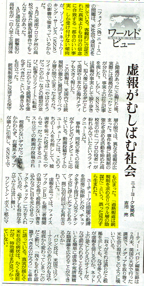 冒頭に「真実よりも自分の信念に合致する『都合のいい事実』しか受け付けない傾向」とあるんですが、これはまさに御自身のことですよ。これまでさんざん指摘してきたように、奴隷日報、もとい読売新聞という偽ニュースは、自分の都合の良いように事実を捻じ曲げる常習犯です。これまでの投稿は奴隷日報タグにあります。初めてこれを読んだ方に念のためですが、私はたまたま奴隷日報を毎日読める環境にあるだけです。朝日やNHKも全く同じでしょう。何の変わりもありません。