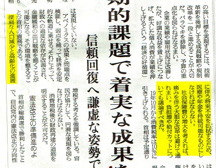 本日の奴隷日報、もとい読売の紙面は基本的に安倍ジョンウン総統バンザイ記事で、しかも、社説の方には、前回洗脳され自らの権利を放棄する可哀相なお年寄りで書いた線の通り、安倍ジョンウン当選を受け、国民奴隷からいかに巻き上げるかというテーマに沿った社説となっておりますね。こんなんです。