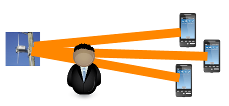 その人の携帯に届くものがですね。群衆だったらどうなるかといえば、10人の人が携帯を使っていて、それらと携帯タワーの間にいるとしますね。そうとは知りませんよね、そんなところに立ってるとは。通りかもしれませんね。突然、10倍のビームにさらされるわけです。
