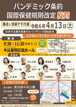 2024/4/13のパンデミック条約反対デモに、当初予定していた神谷宗幣と及川幸久は登壇しなかったようですが、松田学はしゃあしゃあと恥ずかしげもなく顔を出していました。