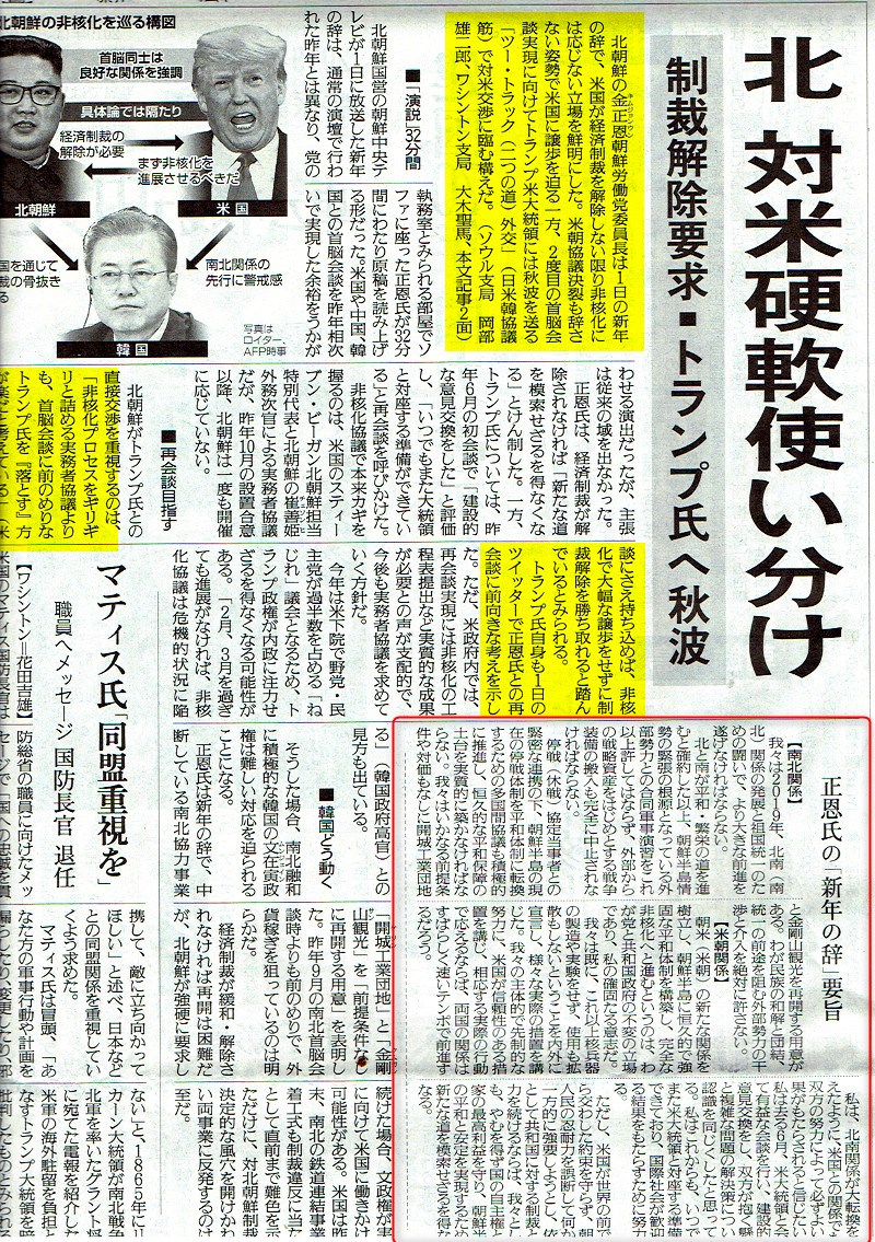 読売にこんな記事が出てました。金正恩の新年の辞とその意図ですね。