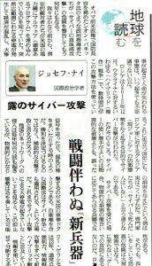 ともあれ、この教授の憂慮するところは、現代の「偽情報拡散のスピードと低コスト」だそうです。直接的軍事力が危険すぎると考えるなら、ロシアはサイバーこそが「完璧な武器」と考えているだろうというわけです。