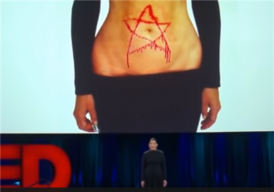 これは、マリーナ・アブラモヴィッチの写真です。彼女は認めています、このペンタグラムを自身の肉体に彫ったことを。