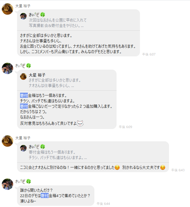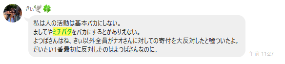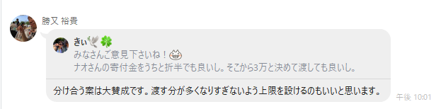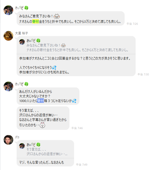 きぃ以外の全員がナオさんへの寄付を反対した