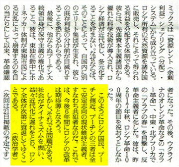 最後に「それでは問題がある、社会がダイナミズムを喪い、益々近代化に遅れをとり、ロシア全体が次第に衰退していくことである」なんだそうです。全くの見当違いの上に、余計なお世話というものですね。どこまで傲慢なのでしょうか?