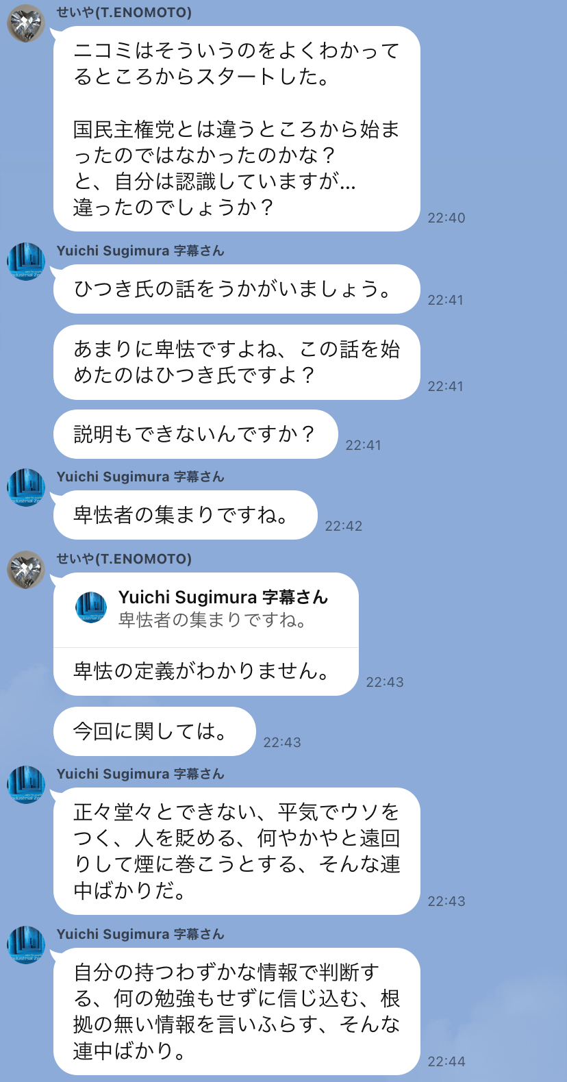 ひつき氏は、メンバーの同意もなくセイヤ氏を勝手にニコミ会LINEに引き入れ、彼と共にニコミ会のクーデターを起こそうとしました。私はこれを完全なクーデター行為と考えています(セイヤ氏についてはこの記事とは別途書くつもりでいます)。