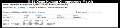 しかし、BLASTでは微生物ゲノムやヒトゲノムのヌクレオチド配列を検索することも可能である。RdRp SARS-CoV-2の配列を検索すると、ヒト染色体と100%の配列同一性が一致する99個の塩基配列が得られる。Orf1ab(E遺伝子)は、ヒト染色体と100%の配列同一性が一致して90を返す。