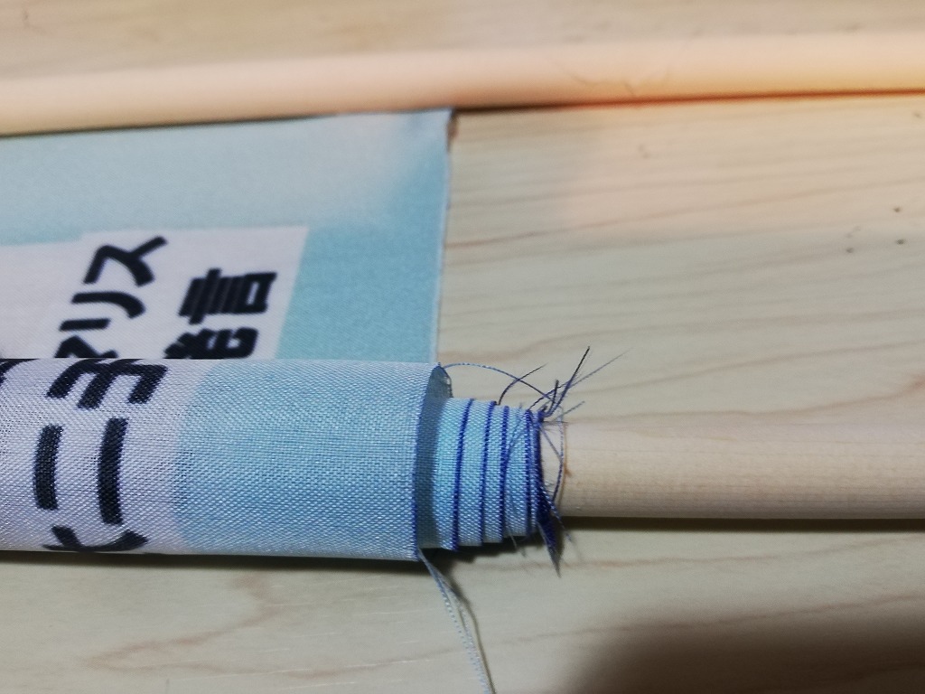 旧ロールプラカードのプラスチック障子紙では感じなかったことが、今回わかりました。それは、「棒が太すぎる」ということです。ホームセンターで販売されている棒の中の最も細いものなのですが、プラカードの材質のペラペラさに比べると明らかに過剰ですし、むしろ棒自体の重みが、持ち運びの障害のように思えてきました。