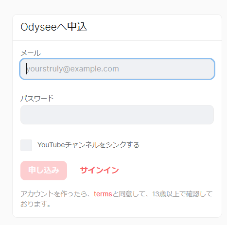 YouTubeと全く同じように、LBRYに動画をアップロードしたい場合にはアカウントを作成する必要がありますが、これもYouTubeと同様に、LBRYの動画を見るだけの人もアカウントを作成しておいた方がお気に入り等の登録ができるので便利です。