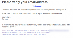 メアド認証のメールが来てるので、単純にそのURLをクリックします。(以下はメールソフトの画面です)。