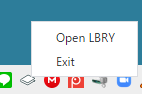 タスクバーにあるLBRYアイコンを右クリックしてExitを選択します。