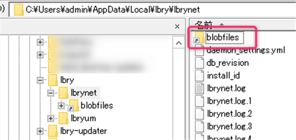 今現在は共有(他者への提供)をしていないでしょうから、とりあえずblobfilesを削除してしまいます。エクスプローラで「%localappdata%\lbry\lbrynet」を開くと、そこにblobfilesというフォルダがあるので、フォルダごと削除します。