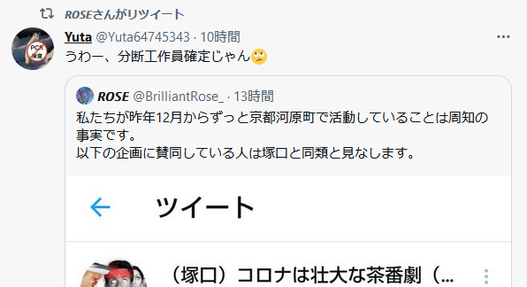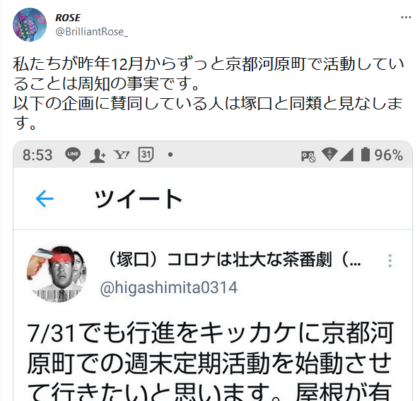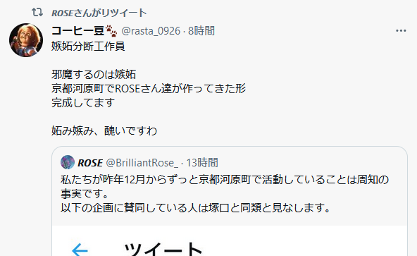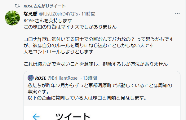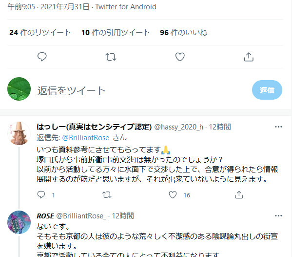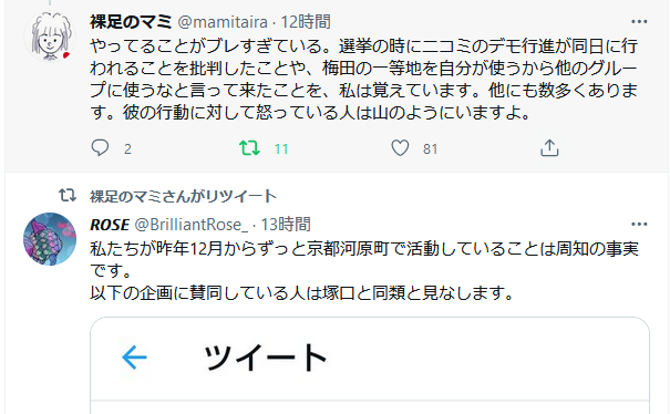 このROSEさんの書き込みの通り、長らく彼女(彼?)らの活動が周知であるにも関わらず、塚口はそこにぶつけてきたらしいのです。