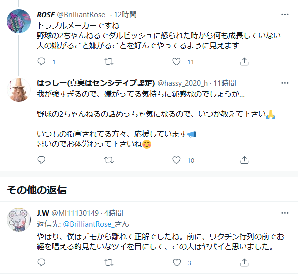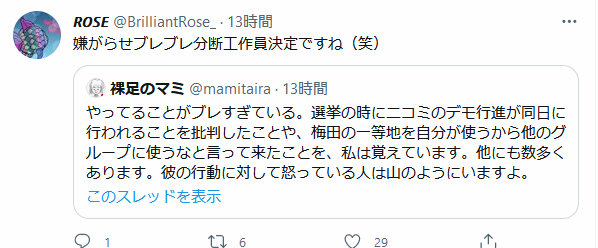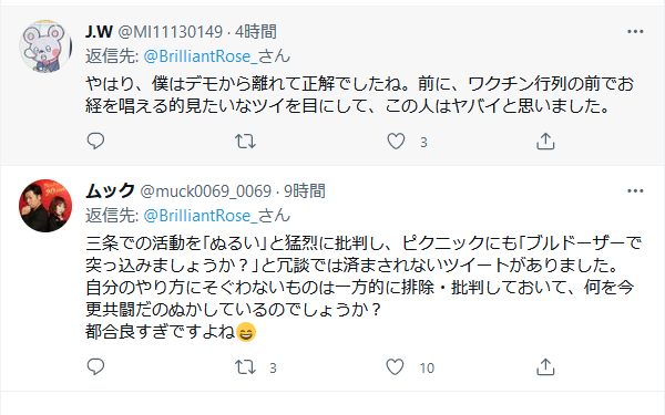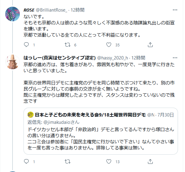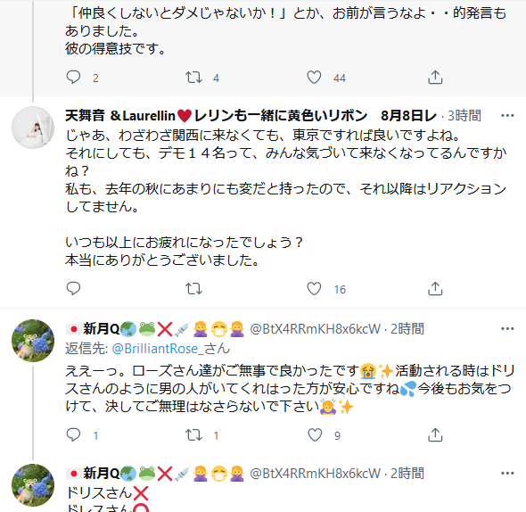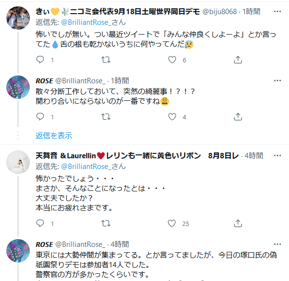 その後、デモと選挙が終わったら終わったで、塚口は「世界デモで平塚のことを宣伝してくれなかった」と不平を言っていたのです。君たちからそんな要請は一切なかったのですが、どういった精神構造なのでしょうか?