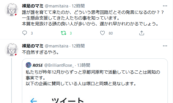 ともあれ、上記ROSEさんの書き込みに対するマミさんの発言が以下です。