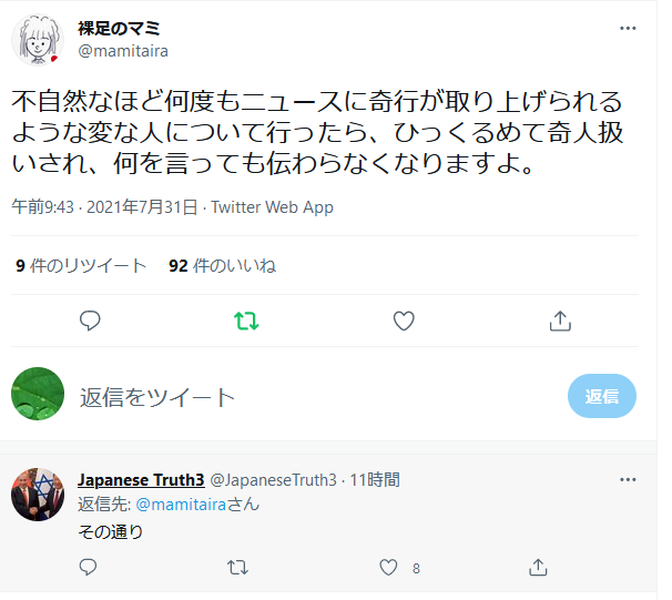 つまり、ここでマミさんが言ってるのは、「自分達がぶつけられた」という不平を言っていたくせに、人にぶつけることは平気の平左という、ダブスタ塚口さんのダブルスタンダードのことを指しています。