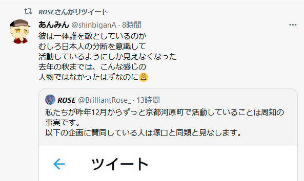 このマミさんの書き込みが相当頭に来たようで、塚口は京都グループの街宣に乗り込んできたようです。