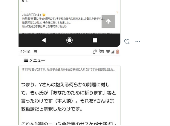 Yは昨年9月頃に、ニコミ会の現代表きぃから宗教勧誘を受けたと言いふらしたのです。きぃは、聖書のみを信じるクリスチャンで、どこの宗派にも属しておらず、一方のYは当時創価学会員でした(上のように、Y本人が言うには、今は創価学会を抜けたとのこと)。