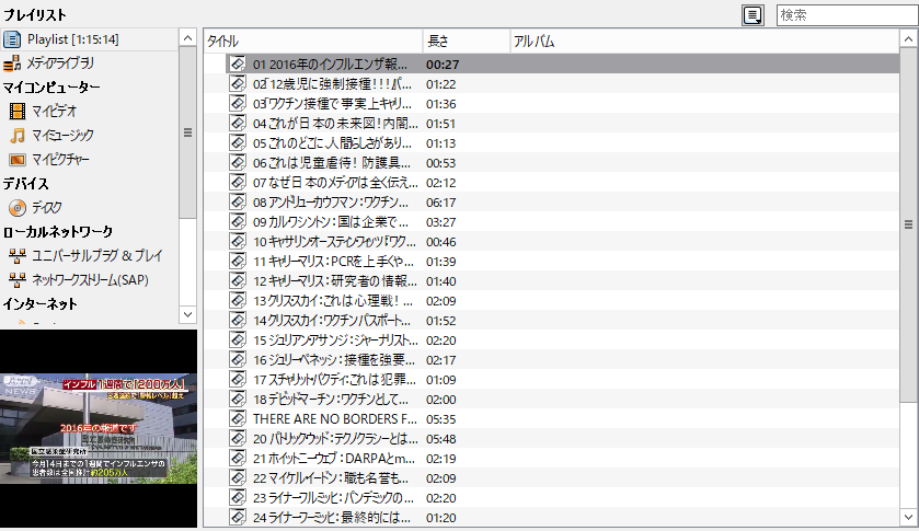 VLCにて短編動画を次々に再生し、自動で最初に戻ってエンドレスにする