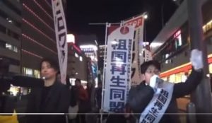 They’re Yosuke Tsukaguchi(left) and Kuniya Kihara(right) with a flag of Kihara’s political party Sokokusaisei-Doumei on Jan 13th 2020. Again, Kuniya Kihara wants completely discarding current Japanese Constitution and taking Japan to back to pre WWII. Tsukaguchi is thoroughly supporting him.