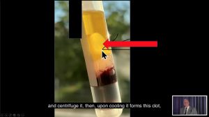 彼女の血液を採取し、遠心分離機で回転させ、そして冷やしました。すると、不思議なゼラチン状の塊ができ、試験管の上部に浮き上がってきたのです。