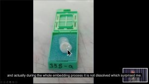 試験管から採取した塊(clot)は、白っぽく、かなり固いが、少し弾力性がある。不思議なことに、組織スライド作製時に使用する試薬では溶けないのです。