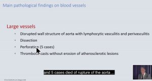 ブルクハルトの大きな血管に関する主な所見は、大動脈の壁の質感が変化している例が多いという驚くべきものです。40例では、これらの変化が大動脈の「解離」(血管壁の層が引き裂かれること)に発展していました。5例では、解離が穿孔に発展していました。