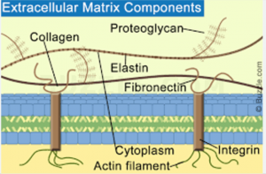 多糖類とコラーゲンやエラスチンのようなタンパク質繊維で構成されています。これらの疾患では、繊維間の架橋が減少し、壁が弱くなったり分裂したりします。簡単に言えば、クロスリンクは棒の束をロープでつなぐような役割をしています。