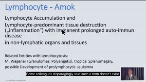彼の分析から得られたもう一つの顕著な特徴は、全身の非リンパ系器官で起こっている広範囲で集中的なリンパ球の浸潤です。例えば、胃の粘膜、心筋炎に伴う心臓、肺に見られるものです。
