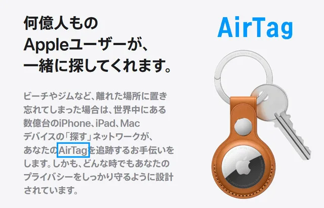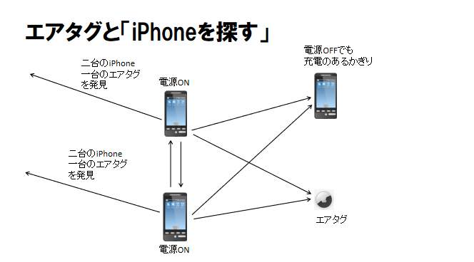 これは、Appleが公に認めていることなのです。エアタグの仕組みとしては、エアタグの場所を近隣のiPhoneが本部に報告することであり、「iPhoneを探す」の仕組みも全く同様です。