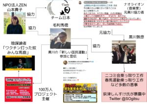 「過剰なワクチン接種見直し」などという、誤誘導しかねない黒川らしいスローガンを掲げた黒川の「コロナ問題を考える会」と「日本列島100万人プロジェクト」の共同イベントなどで、実際に黒川・毛利が協力しあっているのを「スパイ」と称するのでしょうか?