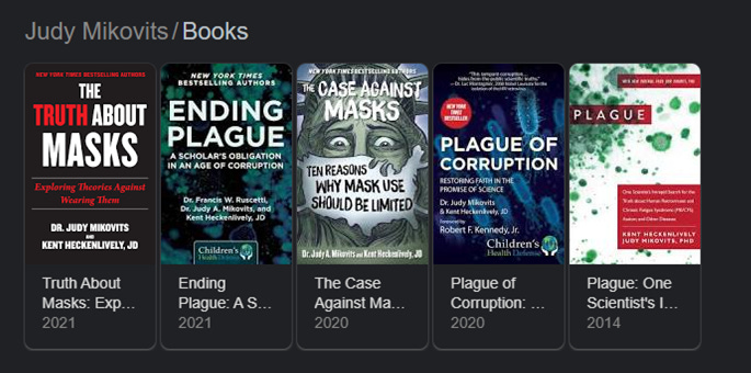 私の意見だが、ジュディ・マイコヴィッツのような人間は、単に名声を築き、宣伝し、人々を惑わすことから得る自分の利益のためだけにいるのではない。その一面としては、彼女の出版した数々の本であり、そのうちのいくつかはベストセラーになっている。私も、まだ彼女が皆を真実に導いていると思っていた頃、興味を持って購入したものだ。彼女の著書リストは以下の通り。