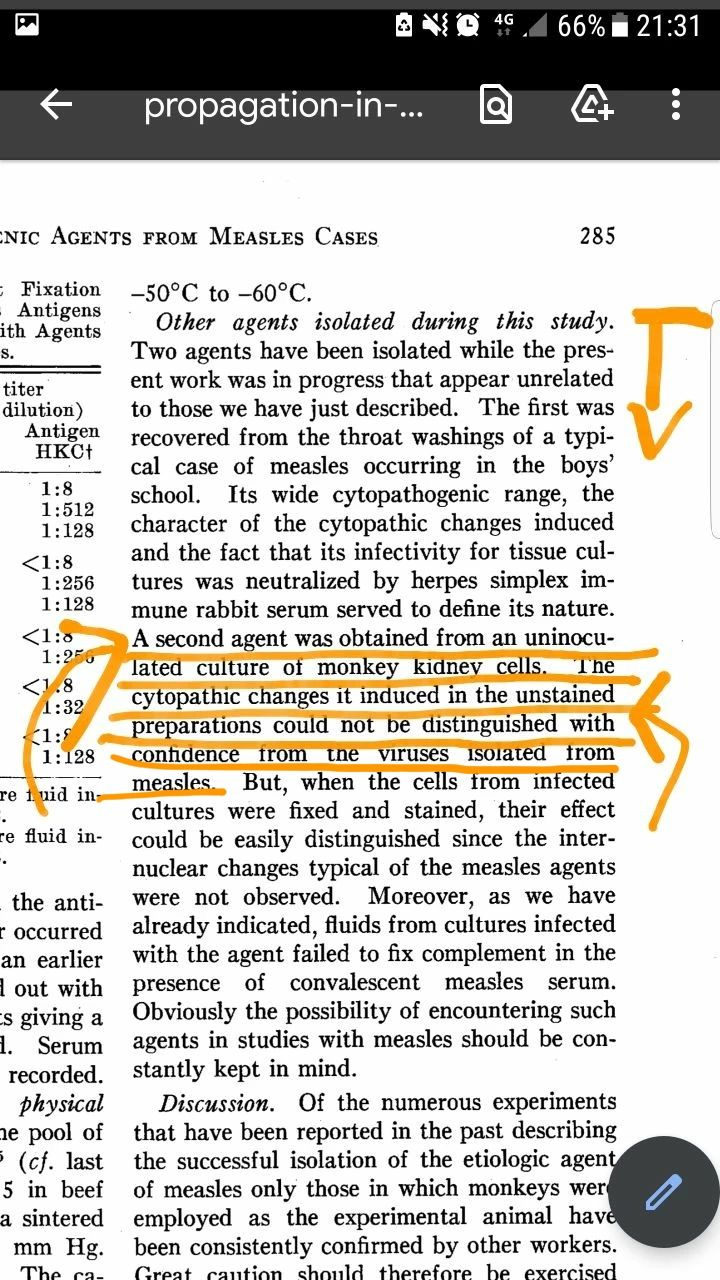 上記動画中にて、一つ特に注目すべき点がある。コーワンが言及しているのは、ジョン・F・エンダースで、彼が上述した方法でウイルスを「分離」した最初の人物である。彼は1949年と1954年に二つの論文を書いている。特に注目すべきは、二つ目の論文だ。この全体を、ここで読むことができる。この論文は重要なので、Steemitにアップロードして保管することにする。