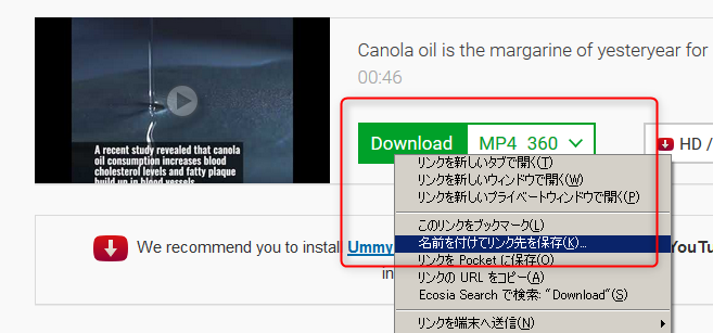 場合によっては、ダウンロードではなく、再生になってしまう可能性もあるので、その場合は「Download」を右クリックして、「名前をつけてリンク先を保存」です。