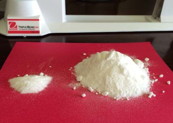 例えば、Brooks Bradleyのレシピでは、6グラムのビタミンCを1.5カップに溶かしていたが、ビタミンCの可溶性としては、330g/リットルだ。つまり、1.5カップの水には124グラム溶解できる。