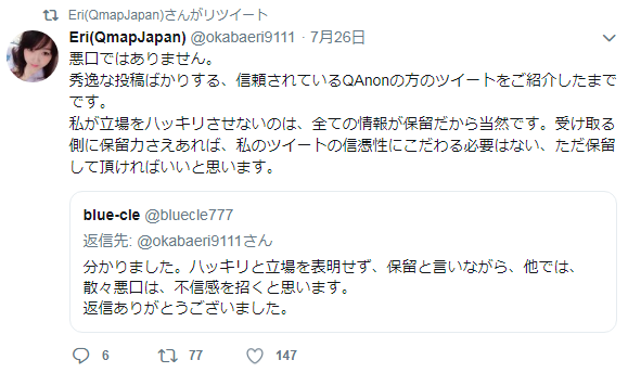 QArmyJapanの詐欺師Eriは自らウソつきであることを認めてました
