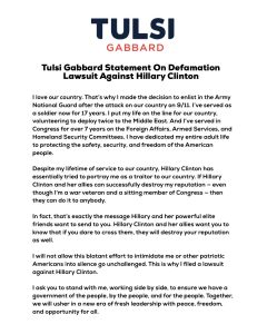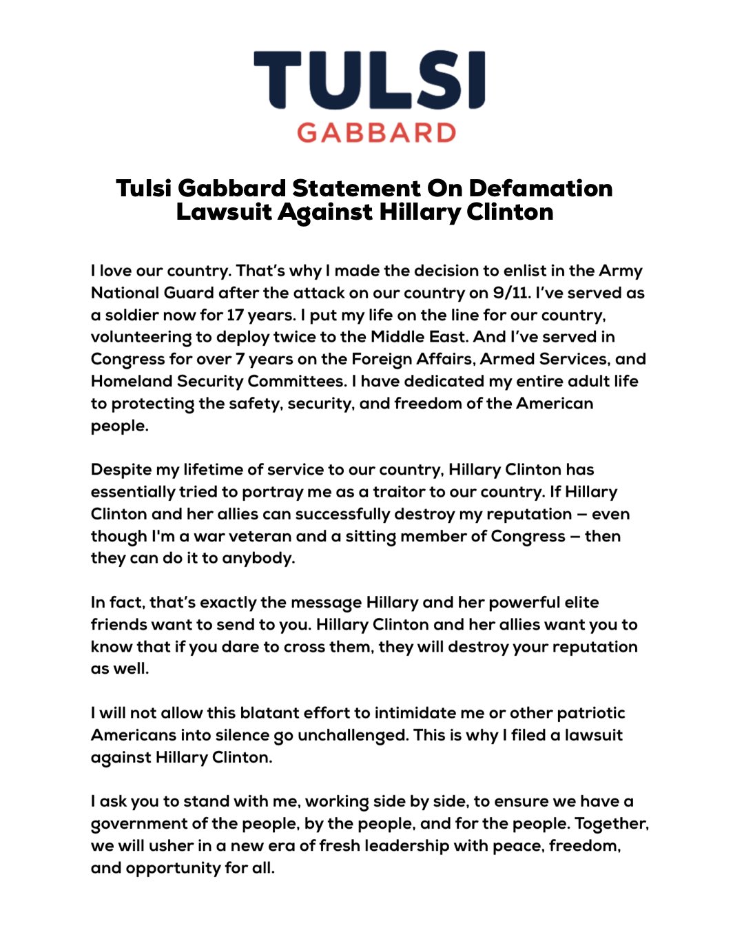 私は、こういったあからさまな試み、私や他の愛国的米国民を恐れさせ、沈黙させ、挑戦しないようにすることを許しません。それが理由でヒラリー・クリントンに対する訴訟を起こしたのです。