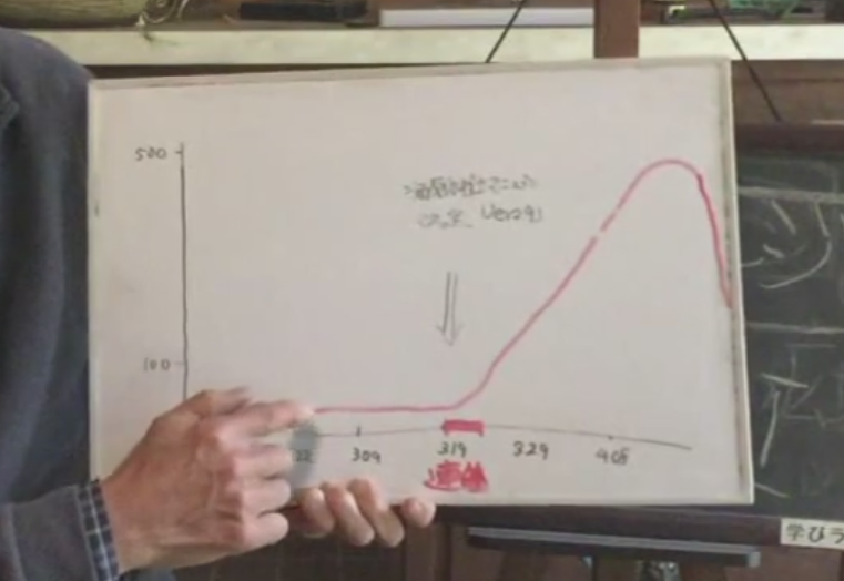 日本ではそれ以前は少ない数だったが、三月の連休、春分の日(3/20)頃から急に立ち上がり、4月半ばをピークに下がってきている。