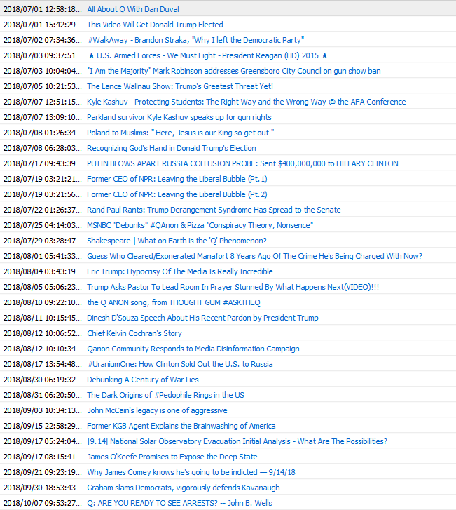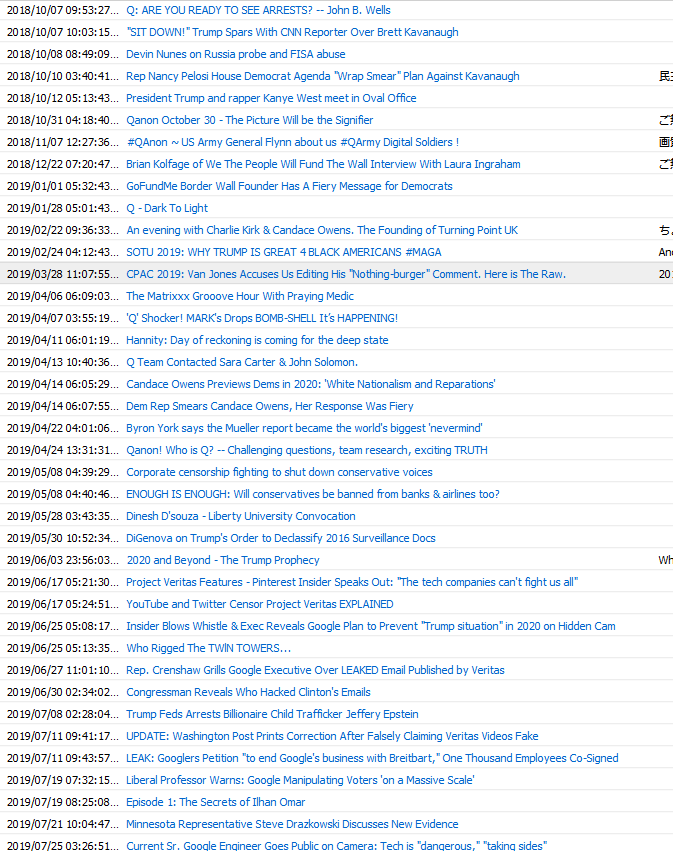 さて、私が最初に字幕つけたのは、Q:世界を救う計画でした。2018/6/29にブログ書いてますから、それ以前ですね。その後、米国在住の日本人女性から字幕付けのリクエストが矢継ぎ早にあり、何やかんやとやっていたわけです。とてもすべてはできませんでしたが、以下のようなものです。