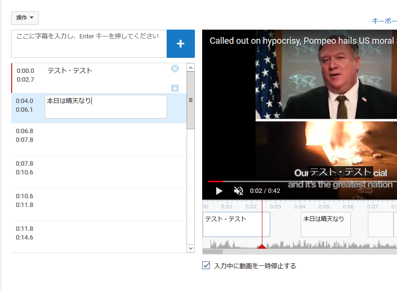 「自分のアップしたYouTube動画への字幕付け」の場合は、これで完結しますから簡単です。ただ、YouTubeの字幕エディタは、以下が不満ですね。