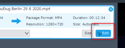 次に字幕をつけるので、今ドロップした動画のEdit/編集をクリックします。