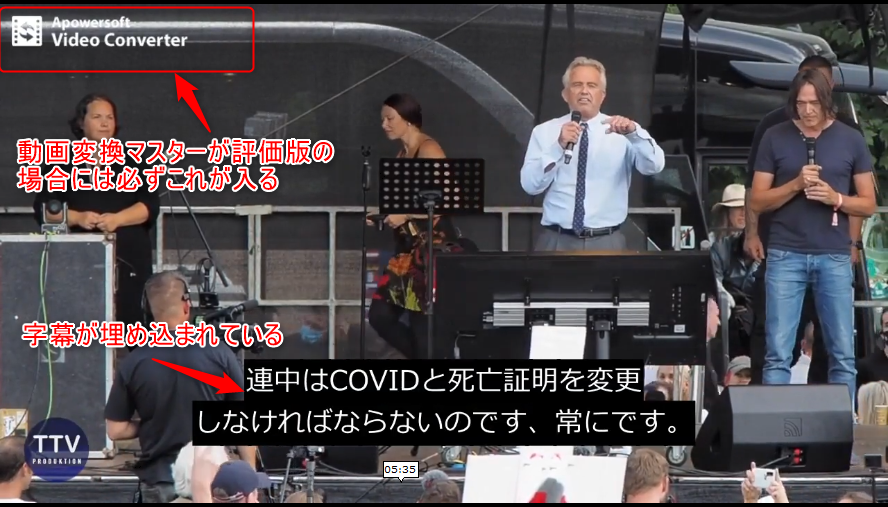 この操作はオプションです。必要なければ、やらなくて構いません。私の字幕埋め込み動画には、以下のように「jimakudaio.com/字幕大王」のロゴマークをつけています。