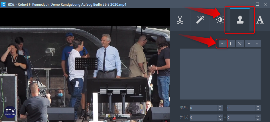 編集画面のスタンプアイコンをクリックし、ロゴマークPNGを読み込ませます(ファイルのドロップはできません)。