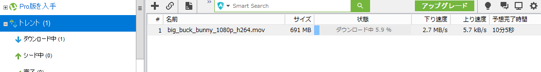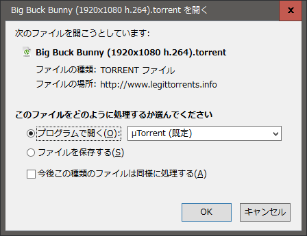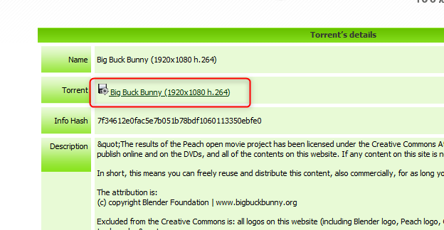例によって、BitTorrentで良く使われるサンプル「Big Buck Bunny」をダウンロードしてみます。