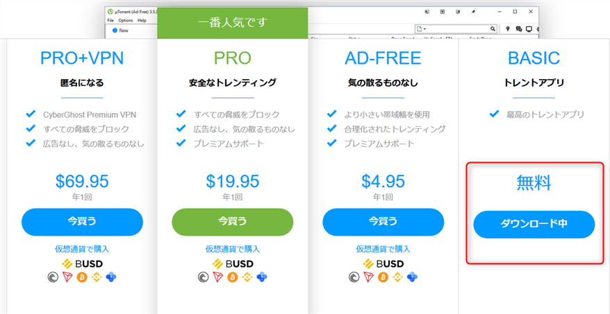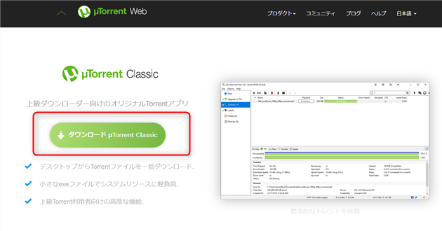 下にスクロールすると、以下のuTorrent(Classic)の画面になります。これをダウンロードします。