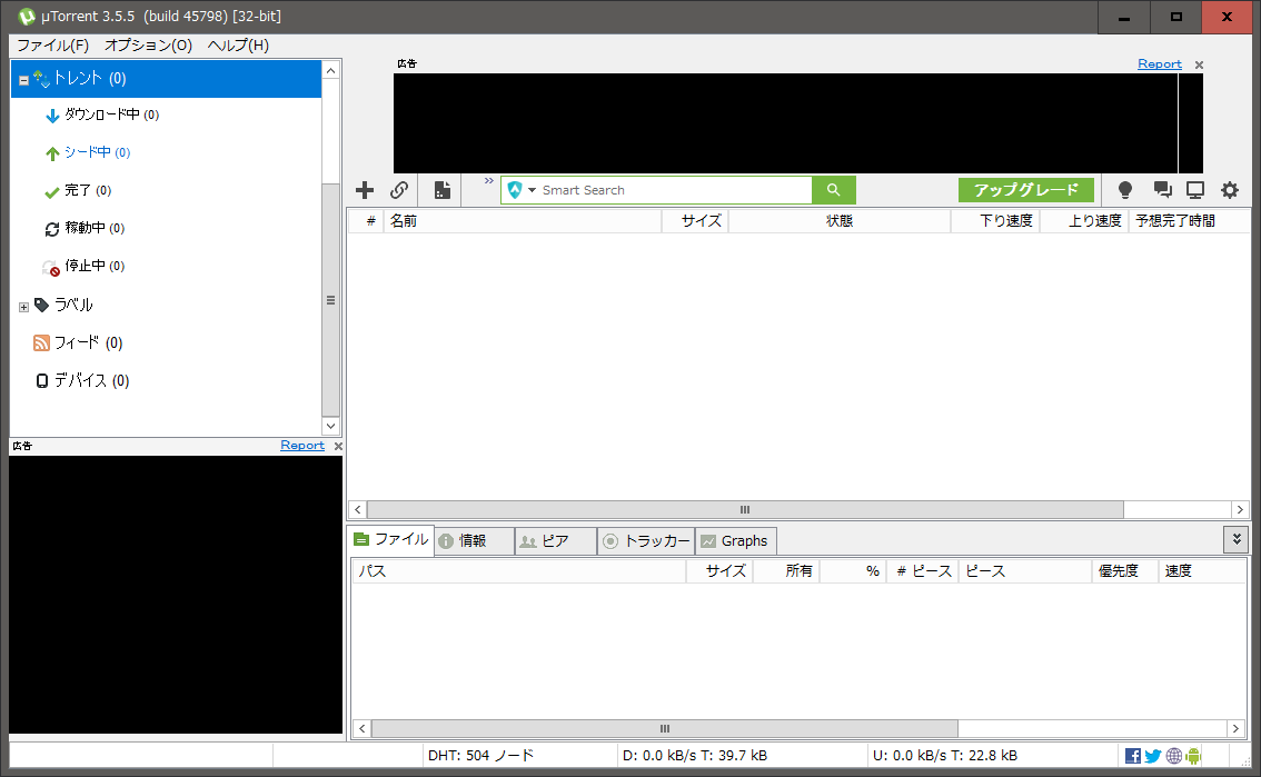 画面の構成や操作方法としては、qBitTorrentとほとんど同じです。おそらくどちらかがどちらかを真似してるんでしょう。戸惑うことは少ないと思います。