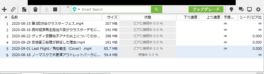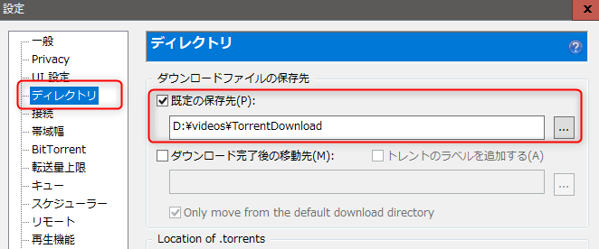 注意点としては、あまりに多くのtorrentファイルを一度に登録しないことです。というのは、例えば、100個追加すると、それら100個のファイルの一部分ずつがダウンロードされるので、一つでも「完全にダウンロードされたファイル」が現れるのが遅れるからです。可能な限り何かしらを早く見たい場合には、その対象のみを指定した方が良いです。